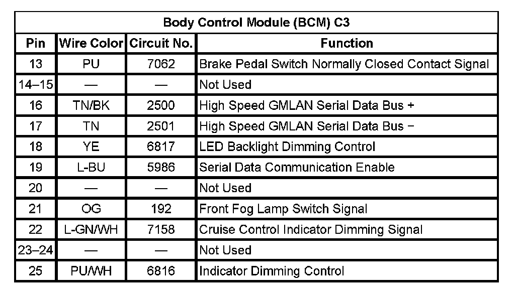 Body Control Module (BCM) C3 (Pin 13 To 25):