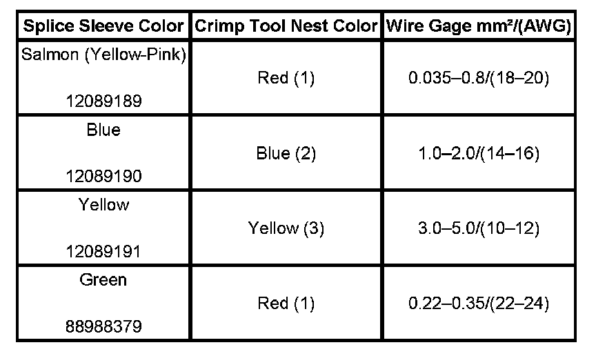 4. Select the proper DuraSeal splice sleeve according to the wire size. Refer to the above table at the beginning of the repair procedure for the color coding of the DuraSeal splice sleeves and the crimp tool nests.