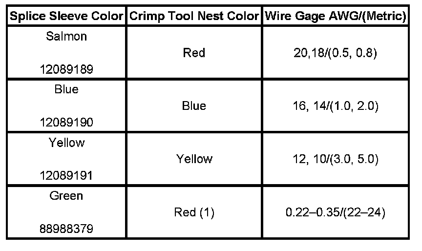 5. Select the proper DuraSeal splice sleeve (2) and the required crimp nest tool. Refer to the Crimp and Seal Splice Table.