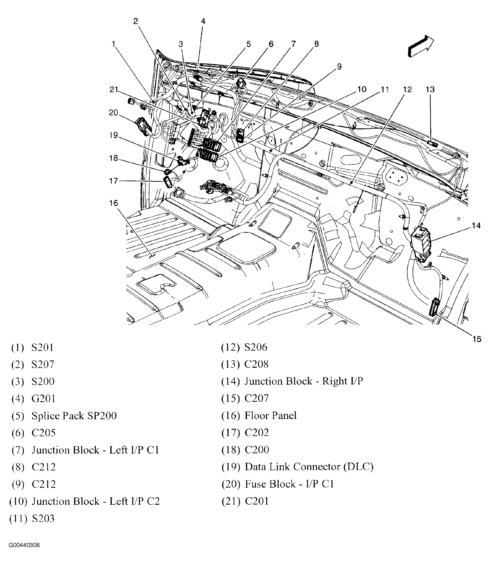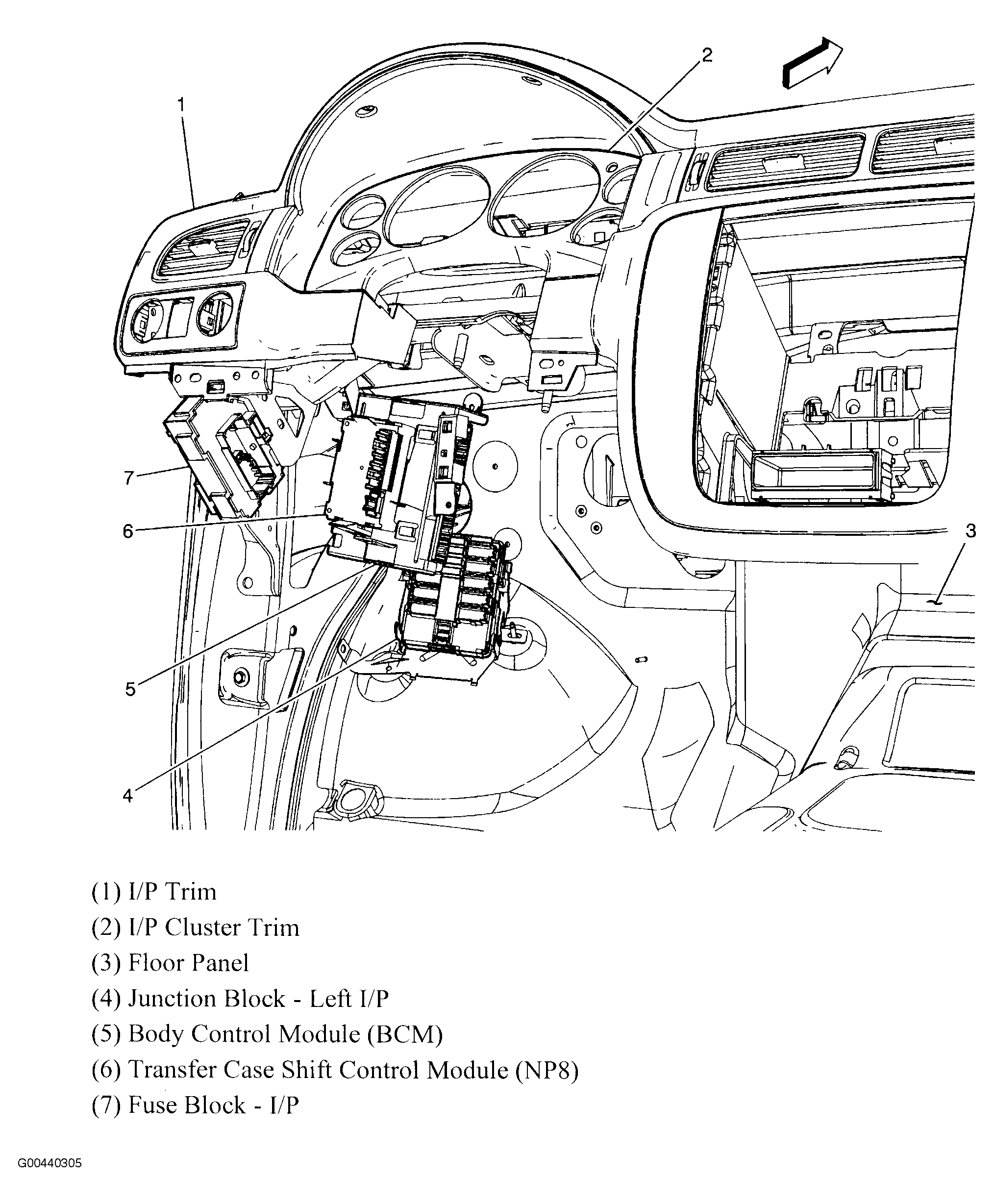 | Fuse Block - I/P | Behind lower left end of dash. See Figure. |