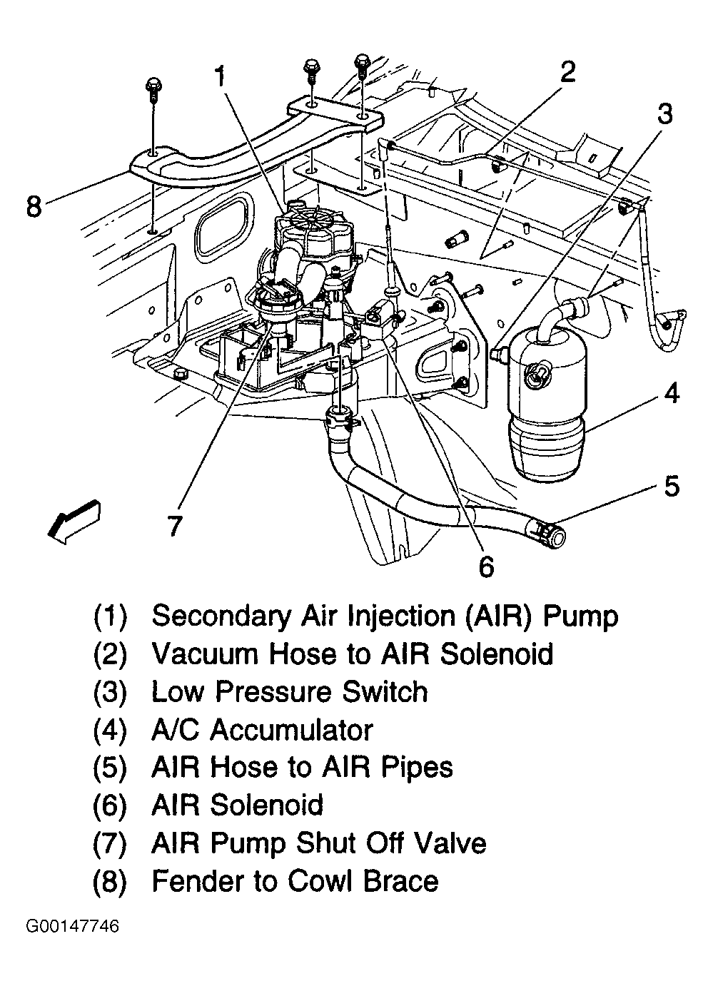 | Secondary Air Injection Reaction Pump | Right Rear Of Engine Compartment |
