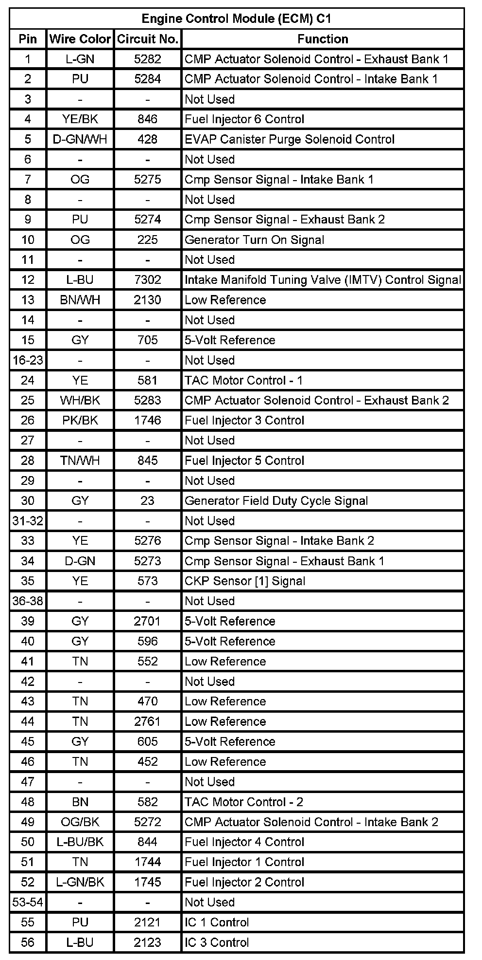 Engine Control Module (ECM) C1 (Pin 1 To 56):