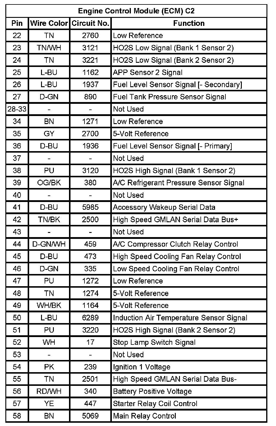 Engine Control Module (ECM) C2 (Pin 22 To 58):