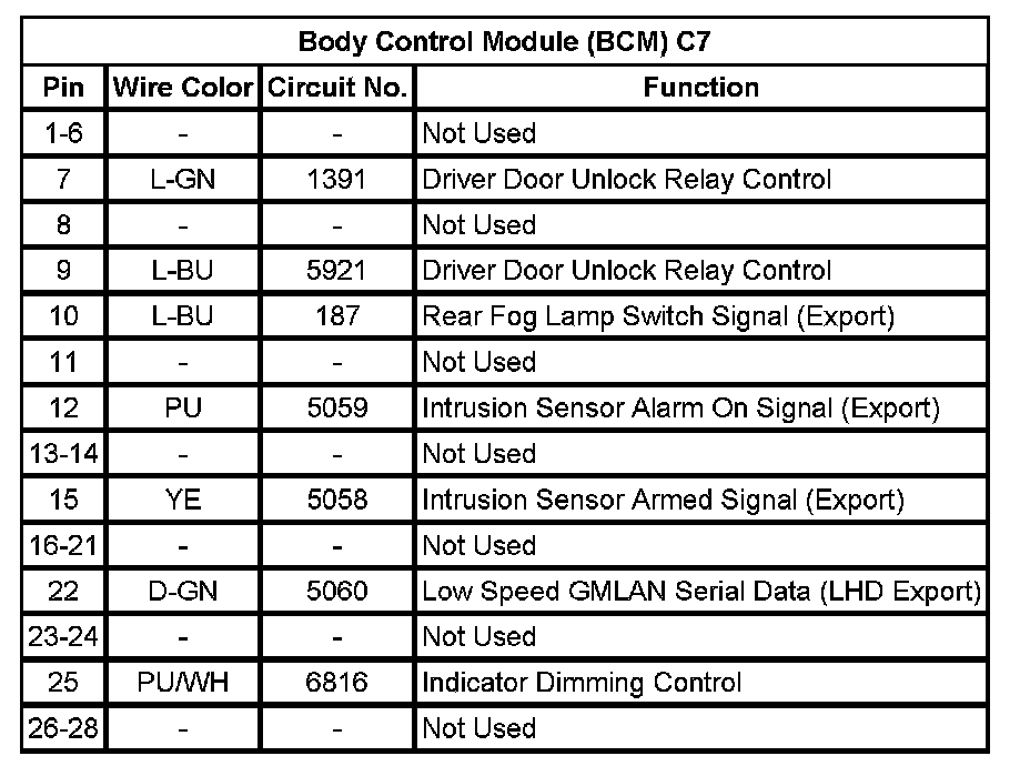 Body Control Module (BCM) C7
