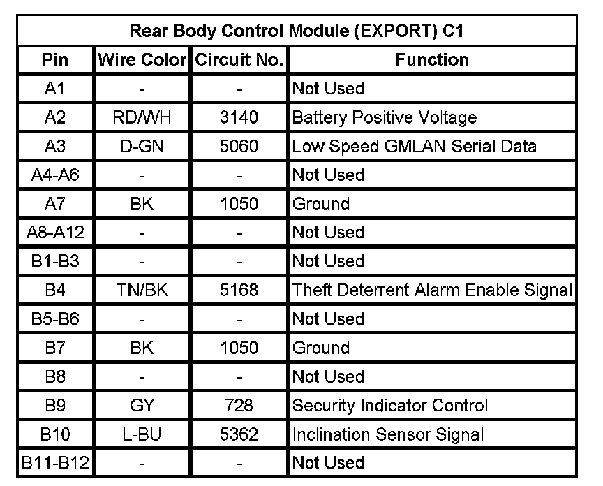 Rear Body Control Module (EXPORT) C1