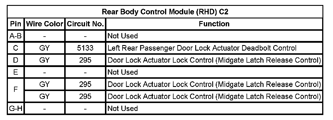 Rear Body Control Module (RHD) C2
