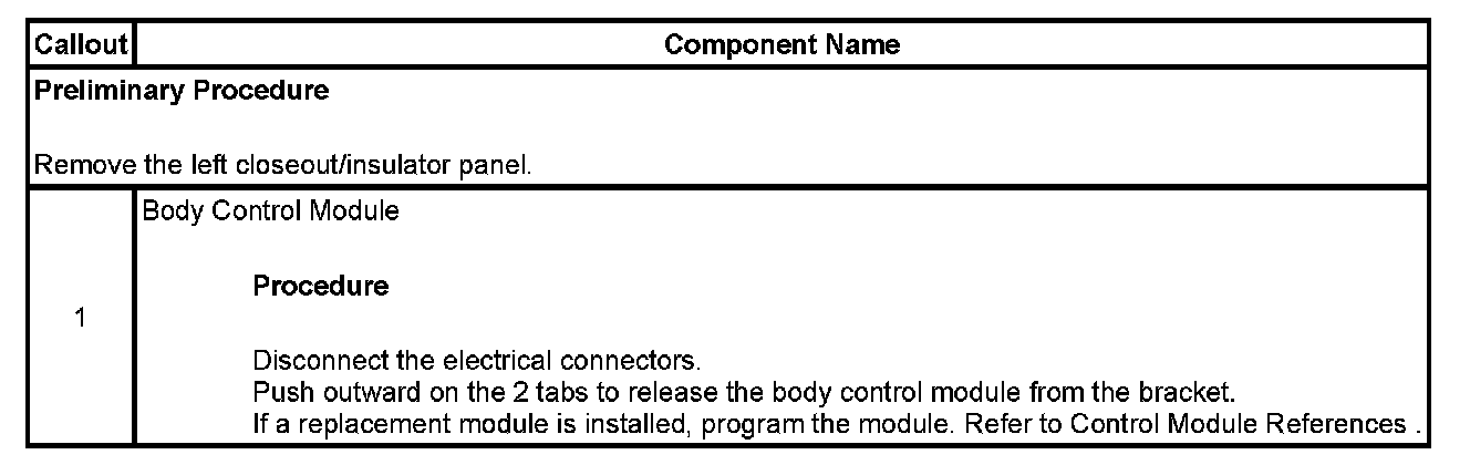 Body Control Module Replacement (Left Hand Drive)