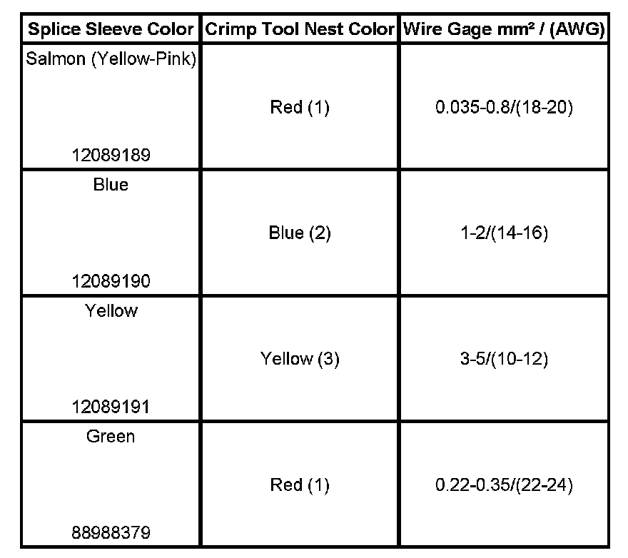 4. Select the proper DuraSeal splice sleeve according to the wire size. Refer to the above table at the beginning of the repair procedure for the color coding of the DuraSeal splice sleeves and the crimp tool nests.