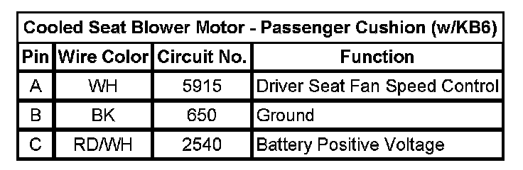 Cooled Seat Blower Motor - Passenger Back (w/KB6)