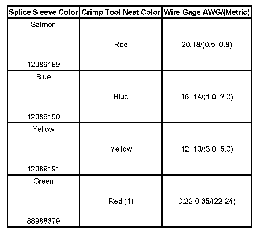 5. Select the proper duraseal splice sleeve (2) and the required crimp nest tool. Refer to the Crimp and Seal Splice Table.
