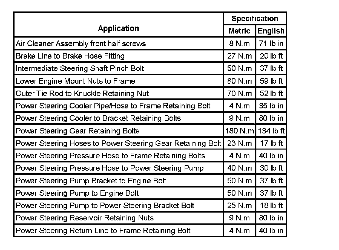 Fastener Tightening Specifications: