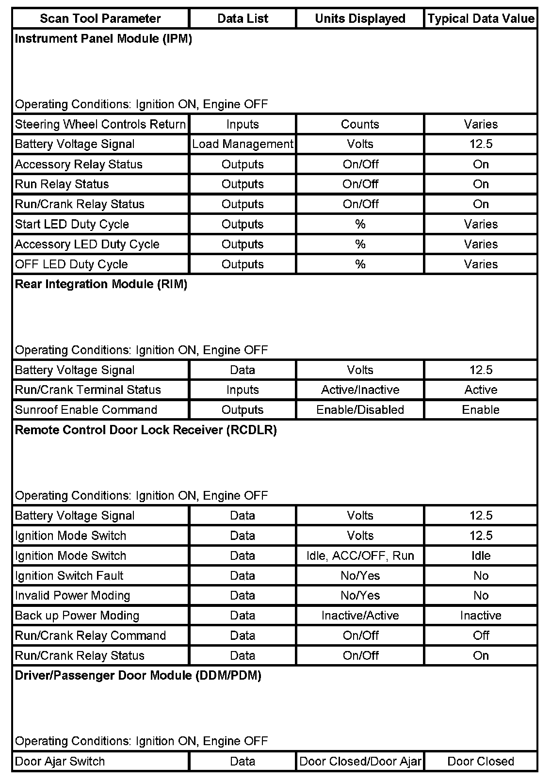 Scan Tool Data List