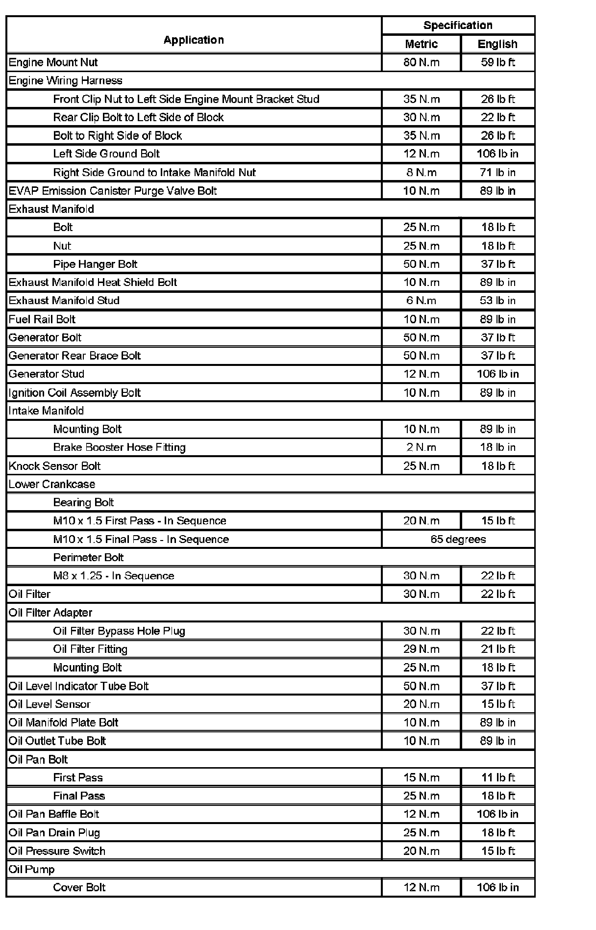 Fastener Tightening Specifications (Part 1):