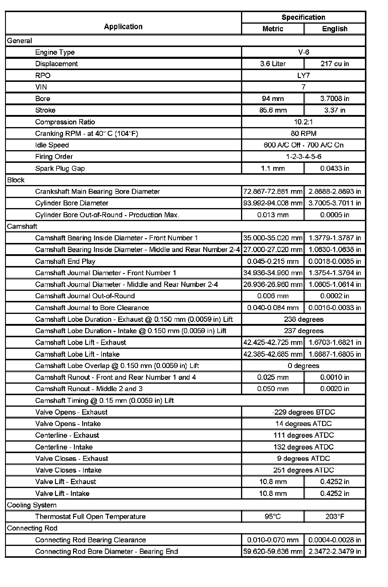 Home >> Cadillac >> 2007 >> STS RWD V6-3.6L >> Repair and Diagnosis >> Specifications >> Mechanical Specifications >> Engine >> System Specifications >> Engine General Specifications & Service Limits