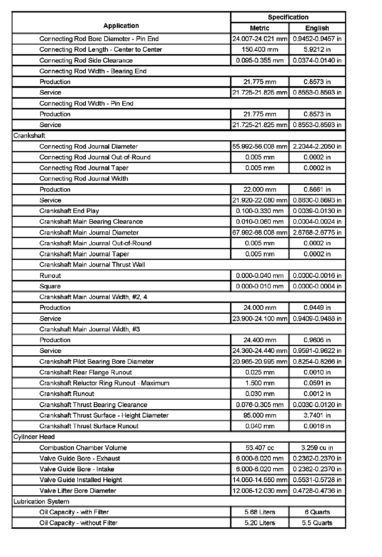 Engine Mechanical Specifications (Part 4):