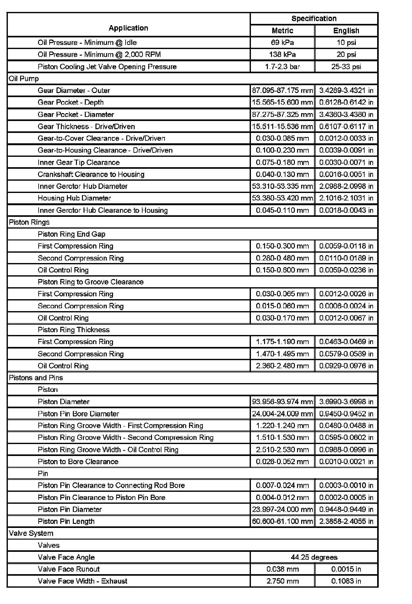 Engine Mechanical Specifications (Part 2):