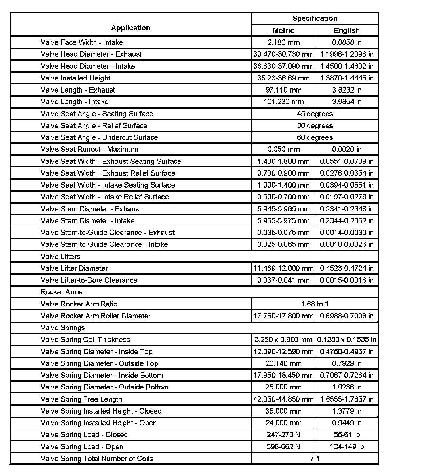 Engine Mechanical Specifications