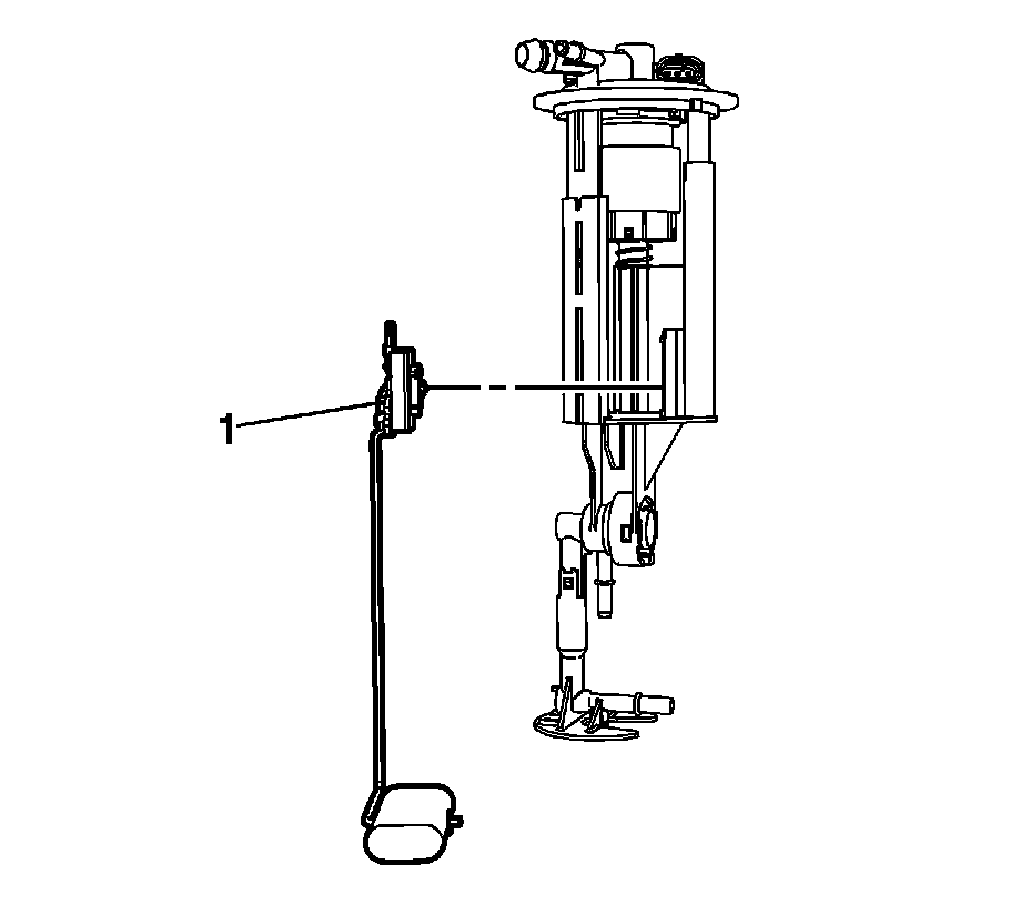 3. Press down on the locking tab and remove the fuel level sensor (1) from the fuel tank module.
