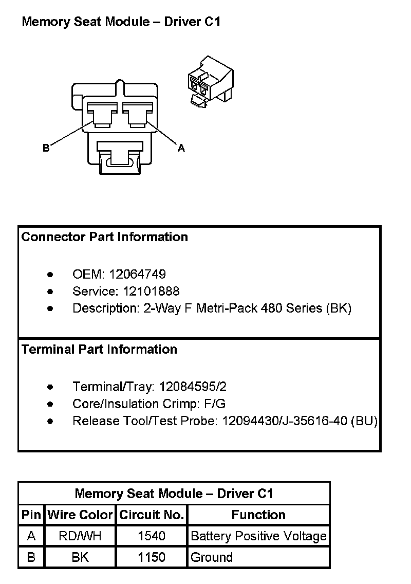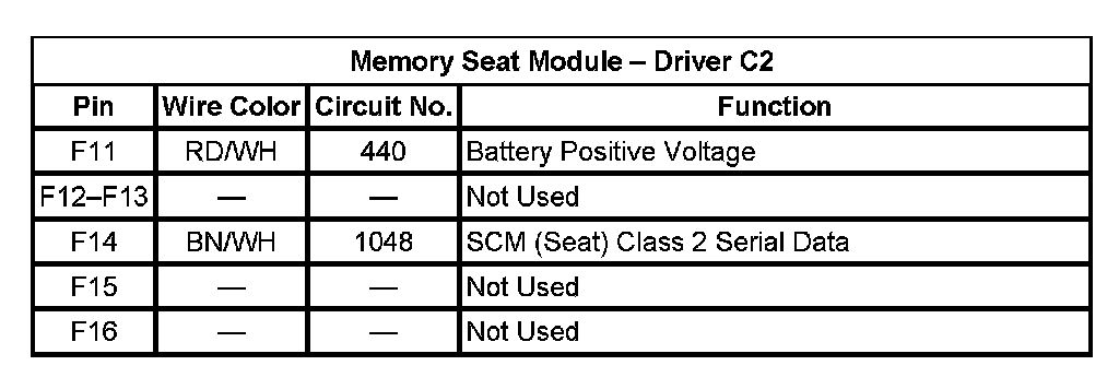 Memory Seat Module - Driver C2 (Pin F11 To F16):