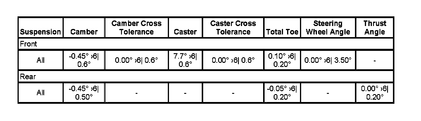 Wheel Alignment Specifications