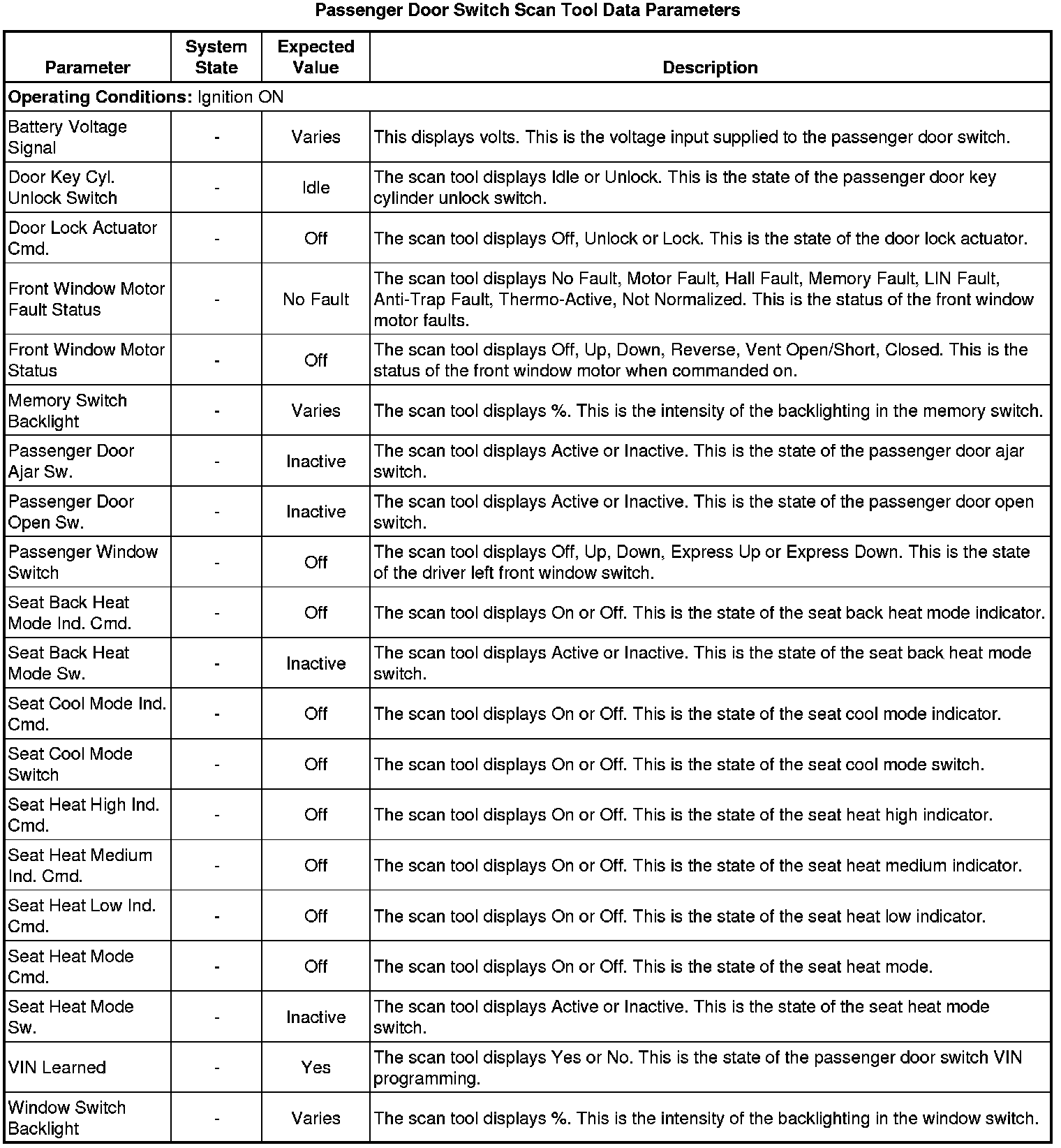 Door Lock Control Module Scan Tool Information (Passenger Door Switch)