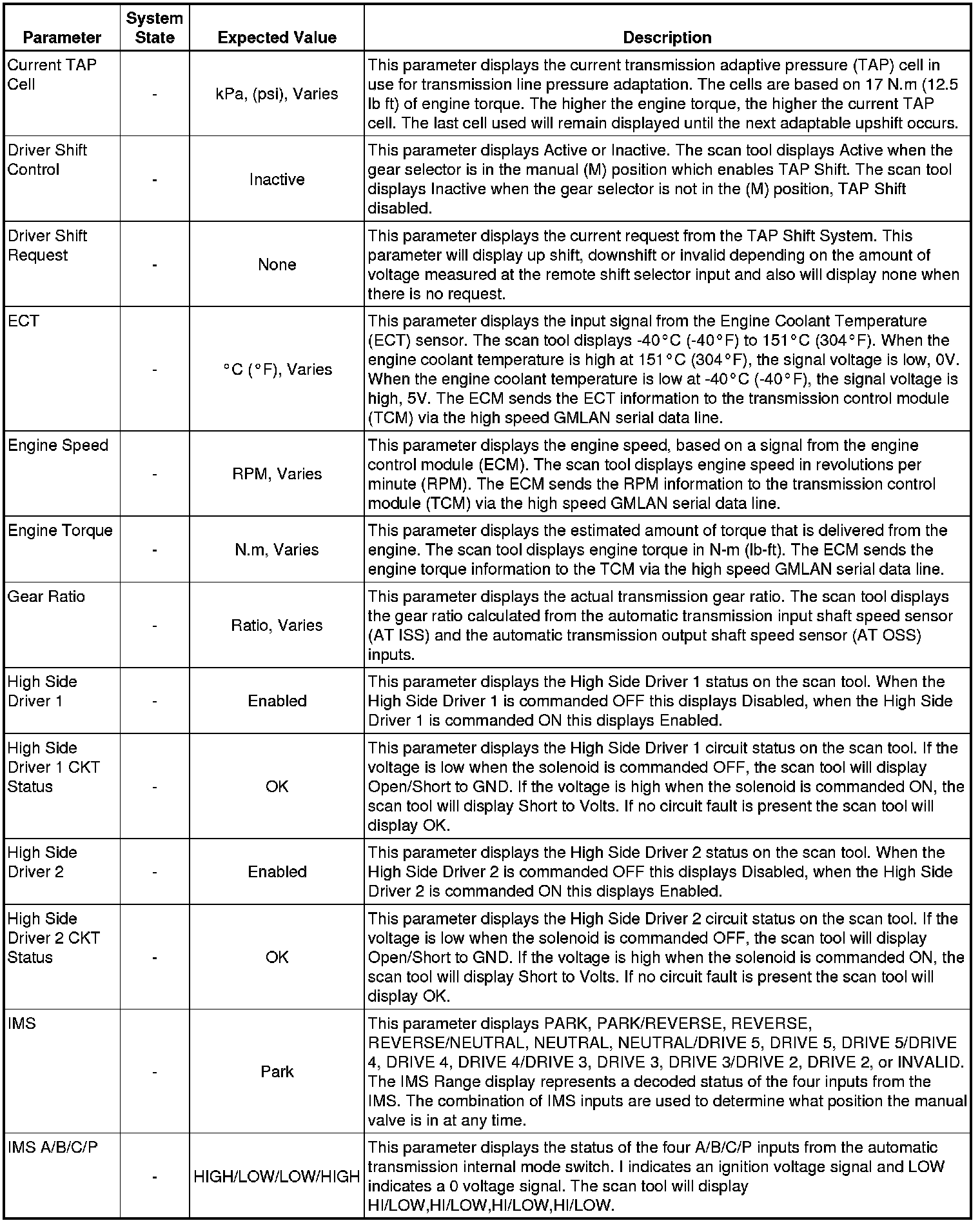 Home >> Cadillac >> 2008 >> SRX AWD V6-3.6L >> Repair and Diagnosis >> Testing and Inspection >> Scan Tool Testing and Procedures >> Transmission Control Module Scan Tool Information (5L40-E)