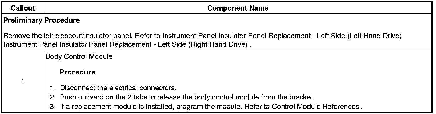 Body Control Module Replacement (Left Hand Drive)