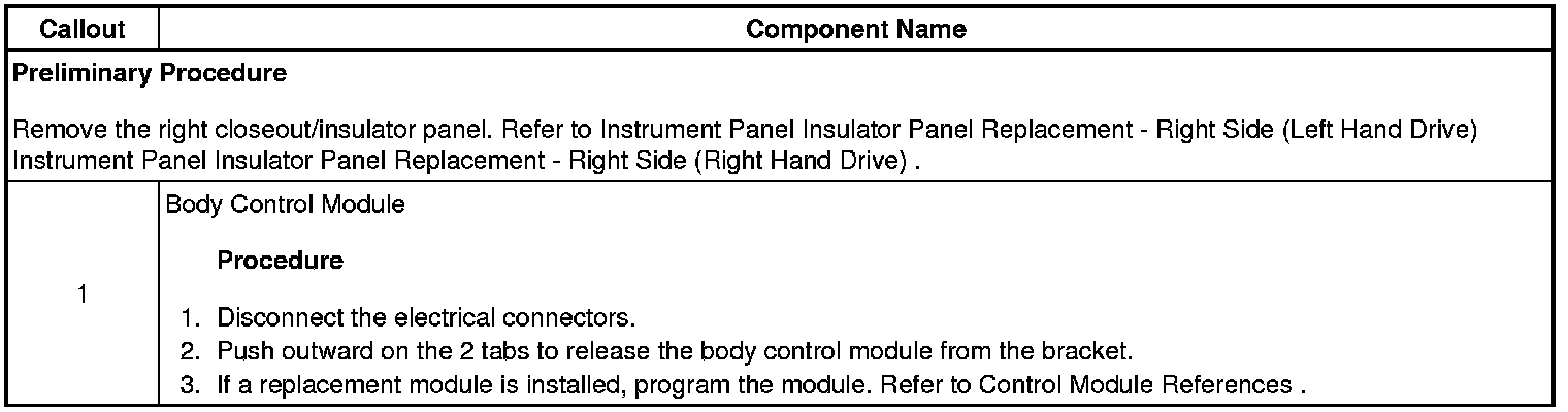Body Control Module Replacement (Right Hand Drive)
