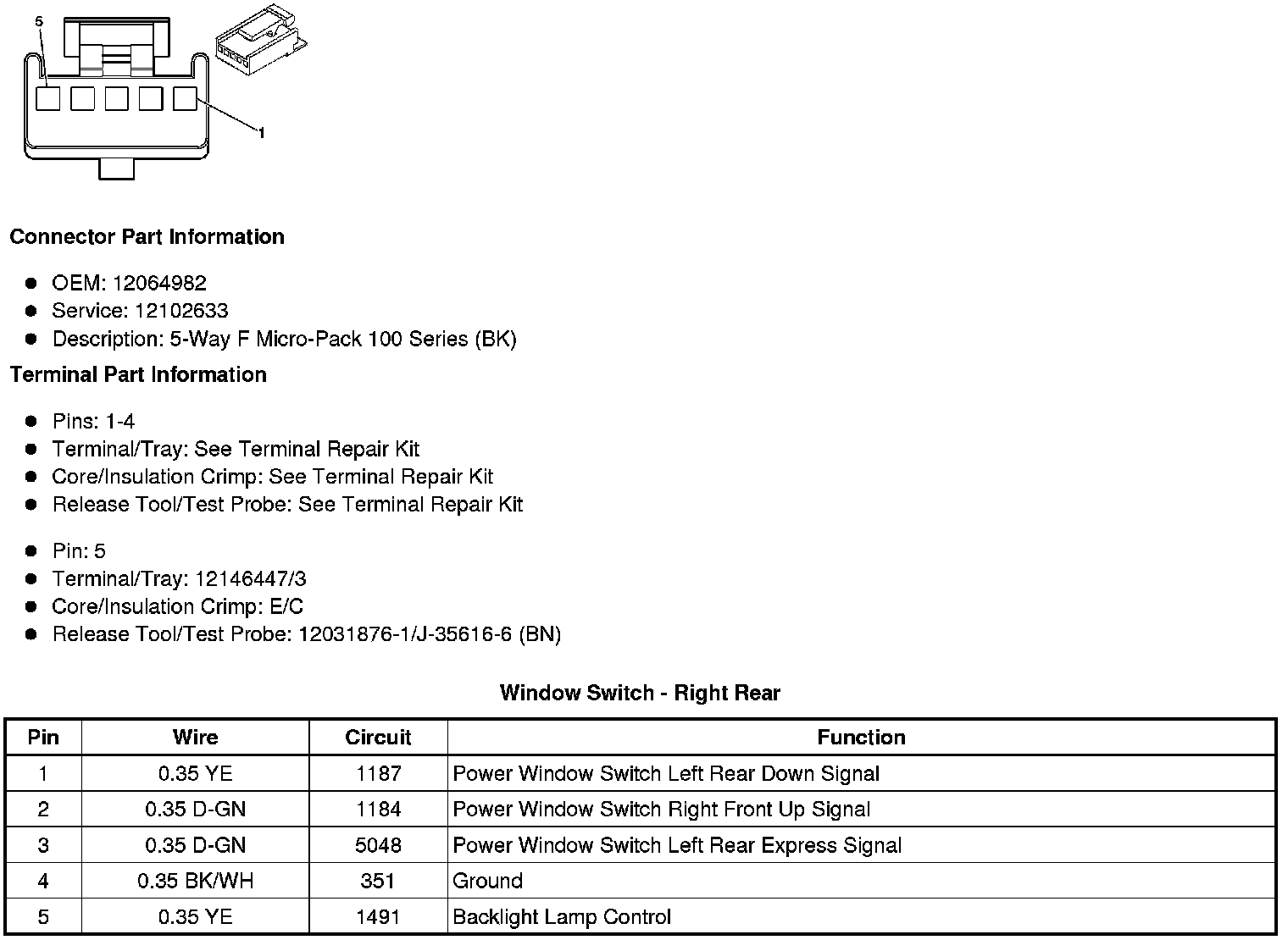 Window Switch - Right Rear