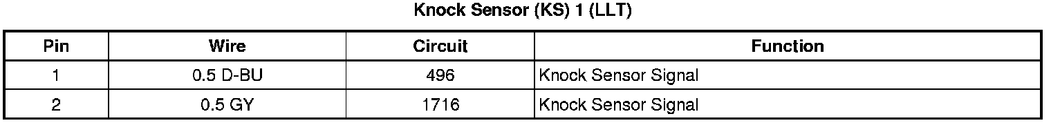 Knock Sensor (KS) 1 (LLT - Gas, 6 Cyl, 3.6L, Sidi, V6, Alum)