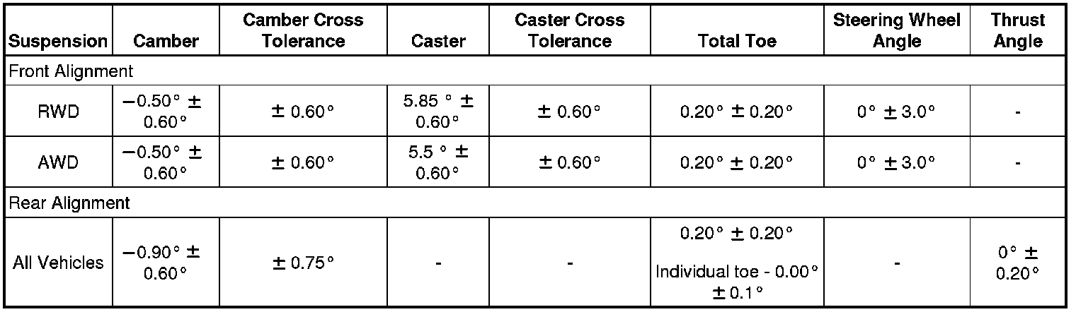 Wheel Alignment Specifications