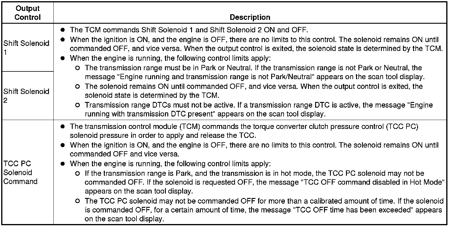 The Transmission Control Module Scan Tool Data List contains all transmission related parameters that are available on the scan tool. The list is arranged in alphabetical order. A given parameter may appear in any one of the data lists, and in some cases may appear more than once, or in more than one data list in order to group certain related parameters together.