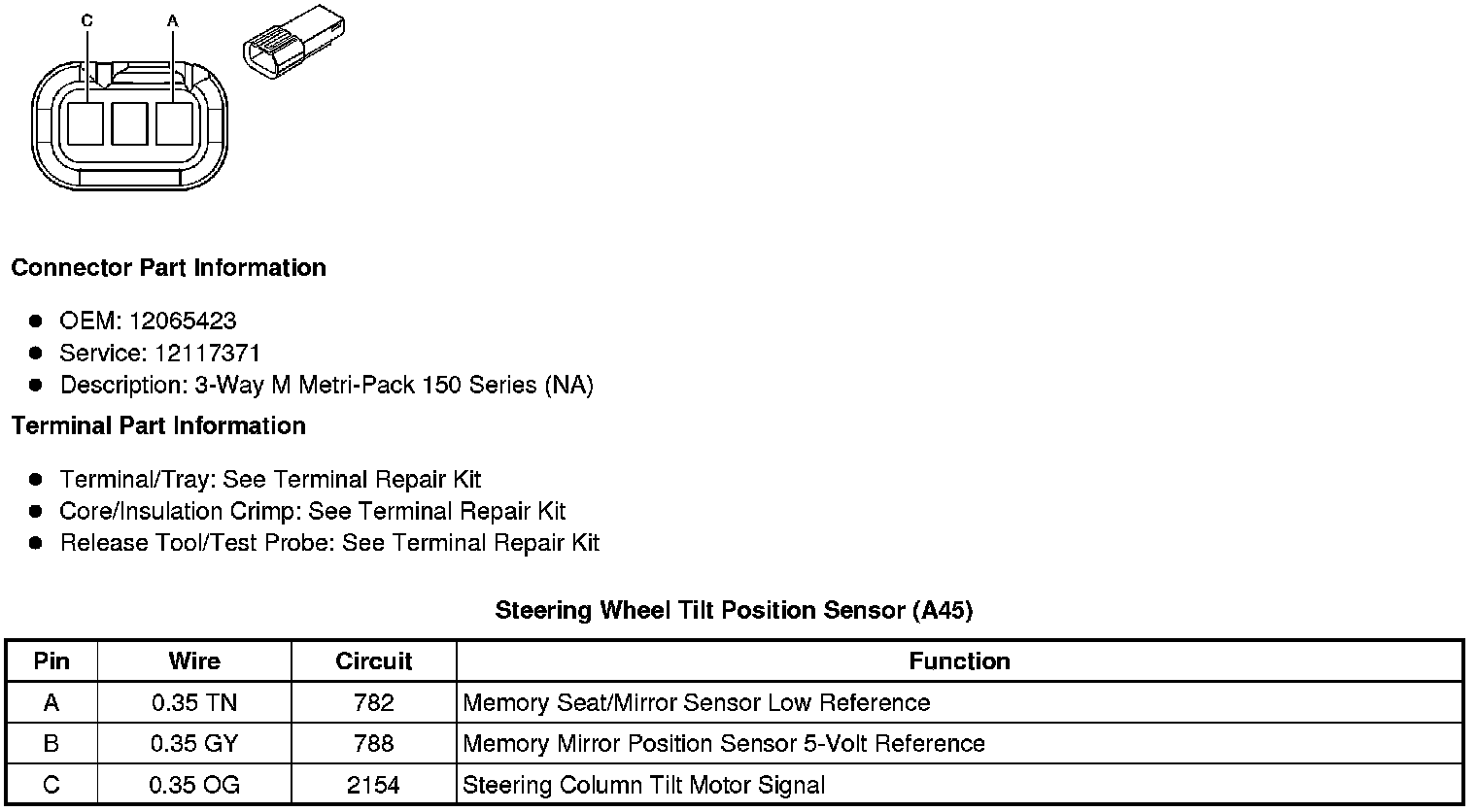 Steering Wheel Tilt Position Sensor (A45)