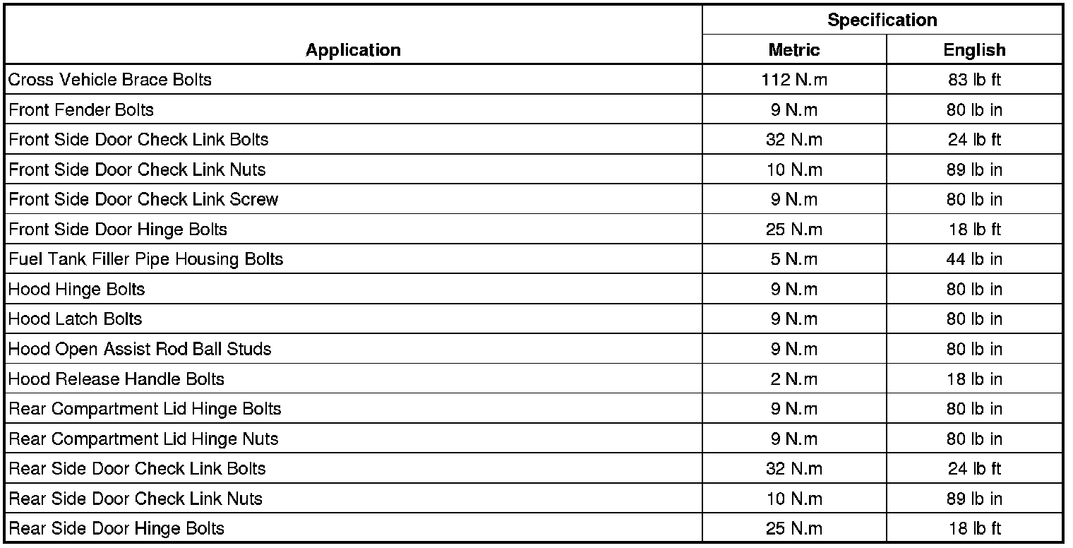Fastener Tightening Specifications