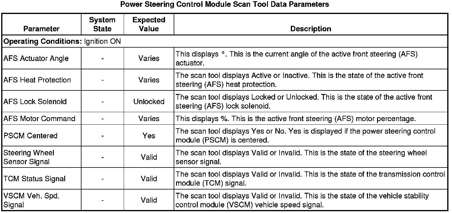 Power Steering Control Module Scan Tool Information