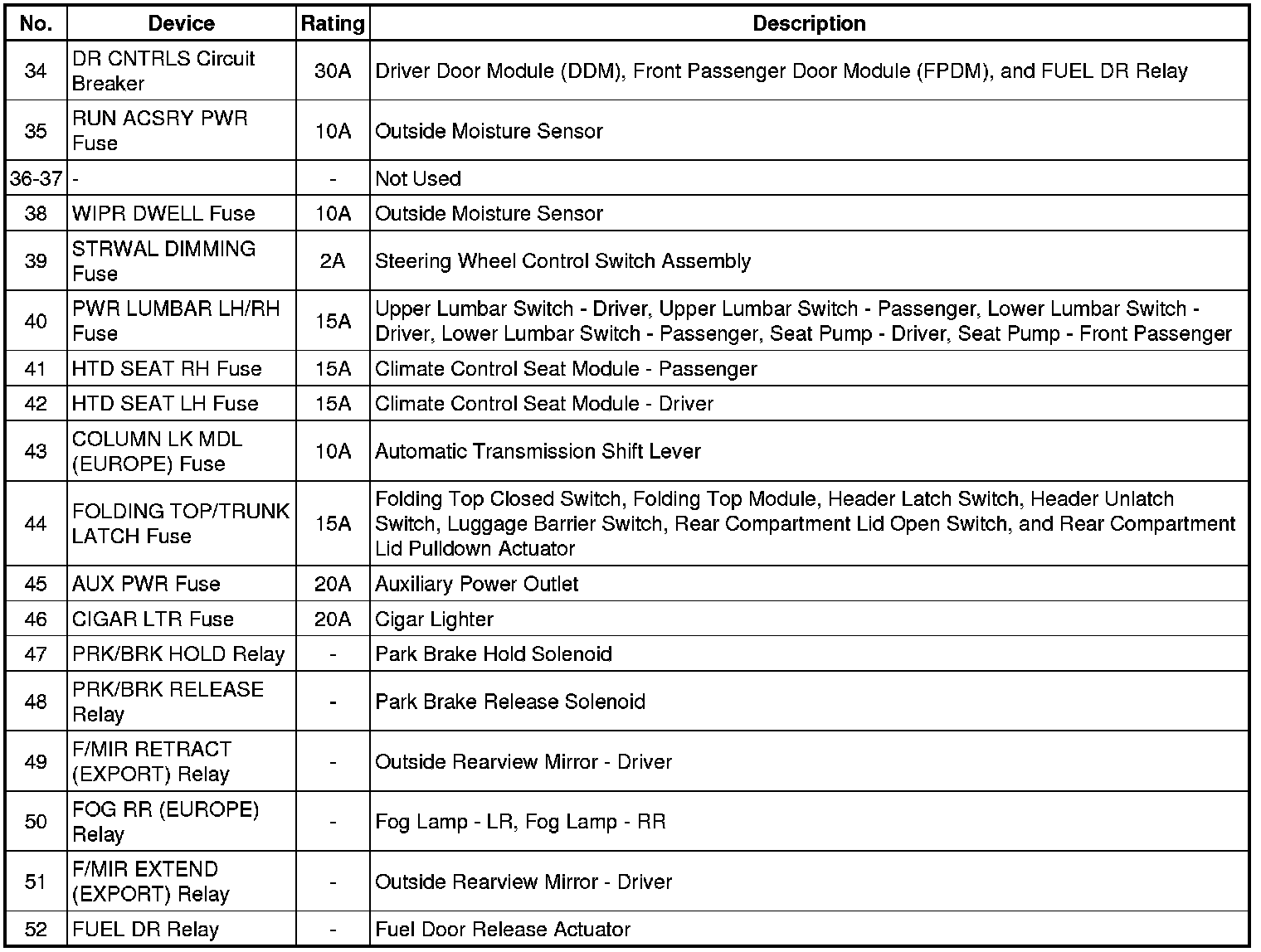 Fuse Block - Instrument Panel, Relay Block - Instrument Panel, and Body Control Module (BCM) Label