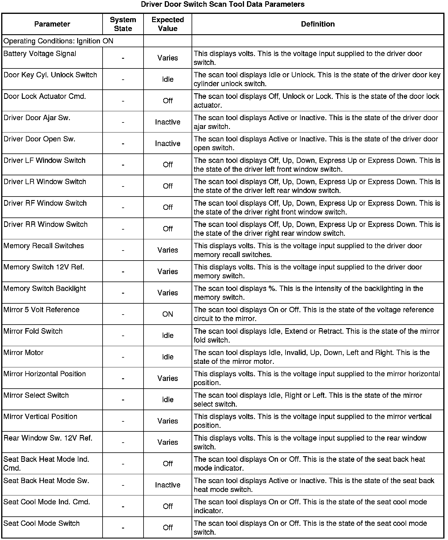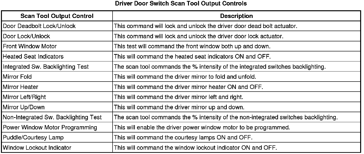 Door Lock Control Module Scan Tool Information (Driver Door Switch)