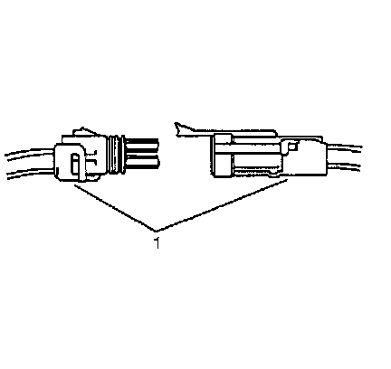 4. Insert the Weather Pack(R) terminal removal tool J 38125-10A into the front (mating end) of the connector cavity until it rests on the cavity shoulder (1).