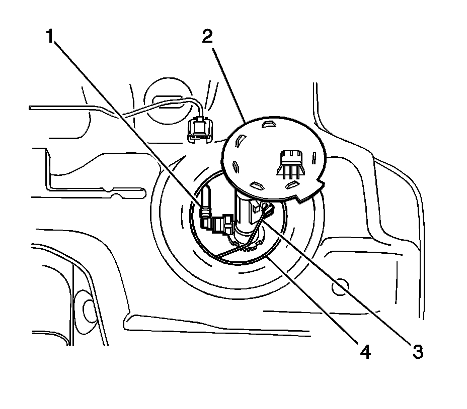 1. Remove the fuel tank in order to gain access to the secondary fuel tank module (2). Refer to Fuel Tank Replacement (Service and Repair).