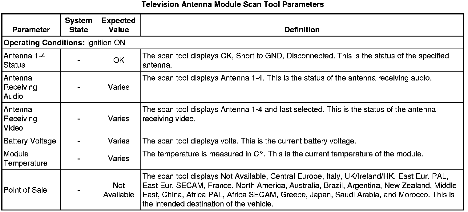 Television Antenna Module Scan Tool Information