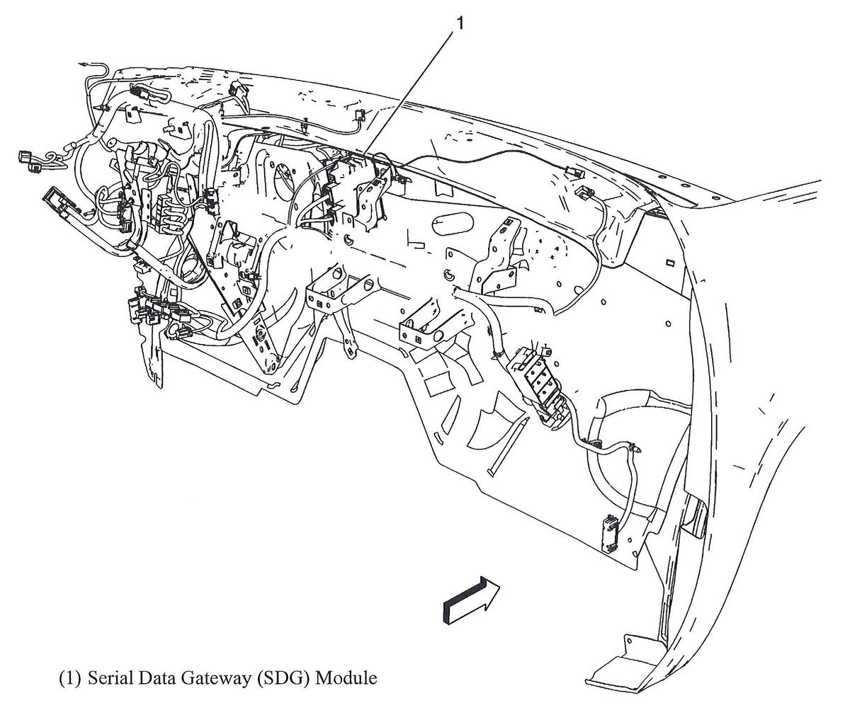 | Serial Data Gateway (SDG) Module | Left side of dash. See Figure. |