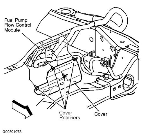 | Fuel Pump Flow Control Module (FPFCM) | On left side of frame assembly, below driver's seat. See Figure. |