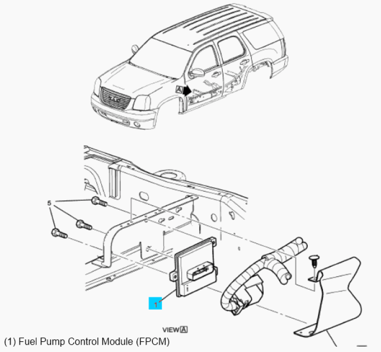 | Fuel Pump Control Module (FPCM) | On left front frame rail. See Figure. |