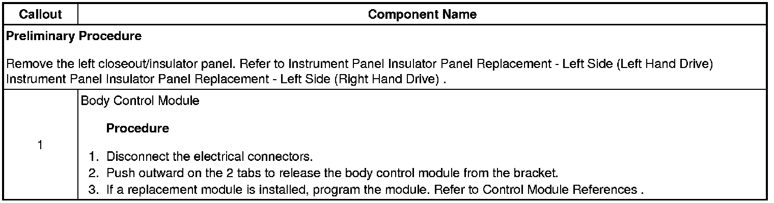 Body Control Module Replacement (Left Hand Drive)