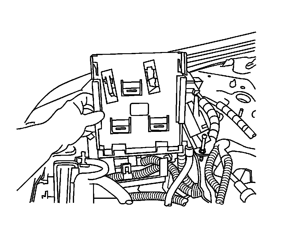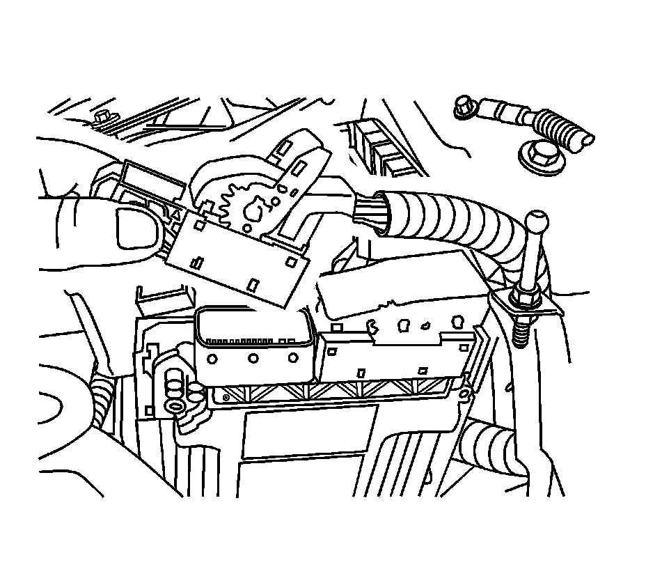 12. Using a small flat-bladed tool, depress the locking tabs on the ECM bracket.