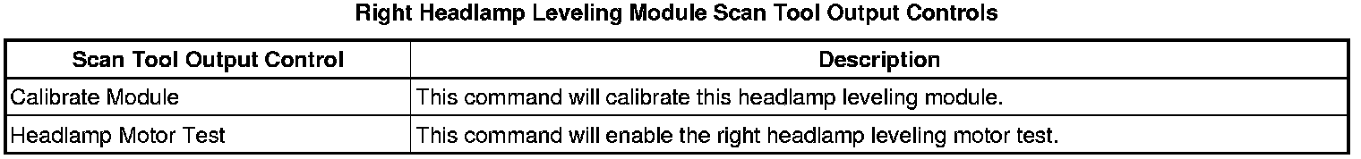 Headlamp Leveling Control Module Scan Tool Information (Right)