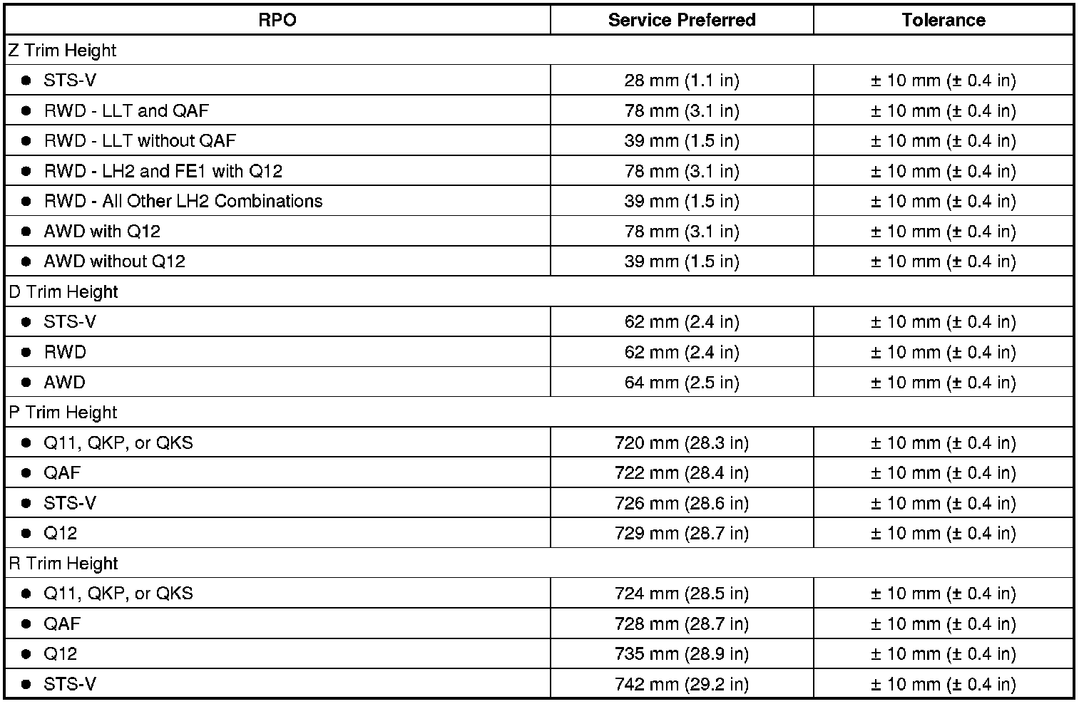 Trim Height Specifications