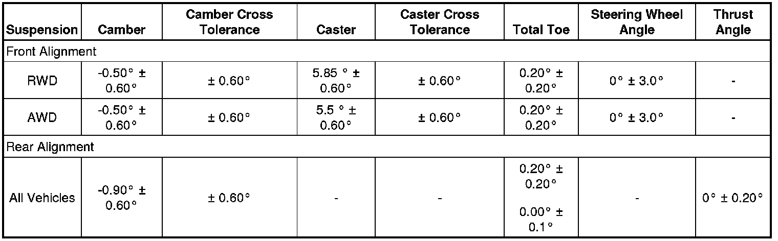 Wheel Alignment Specifications