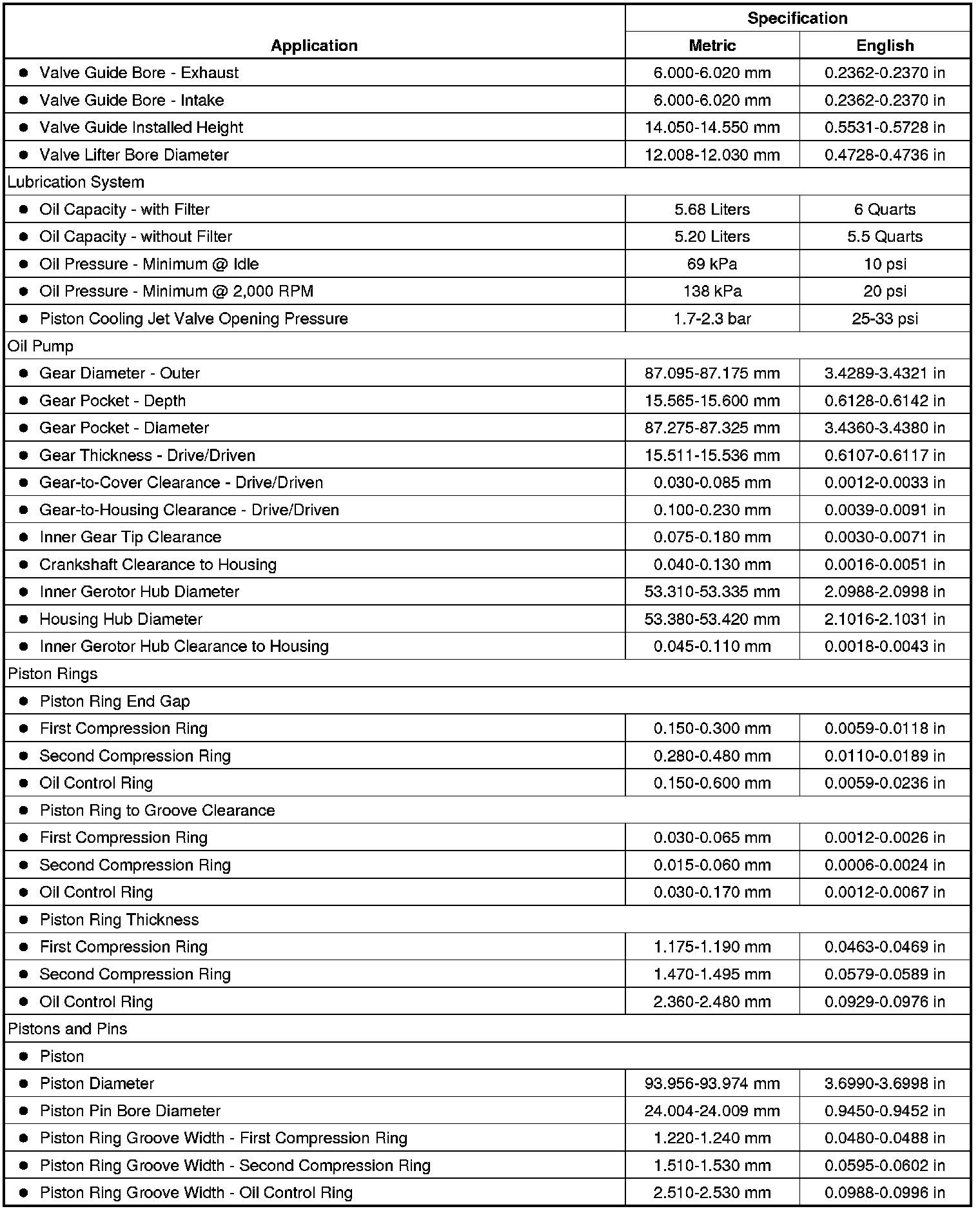 Engine Mechanical Specifications (LLT) (3.6L)