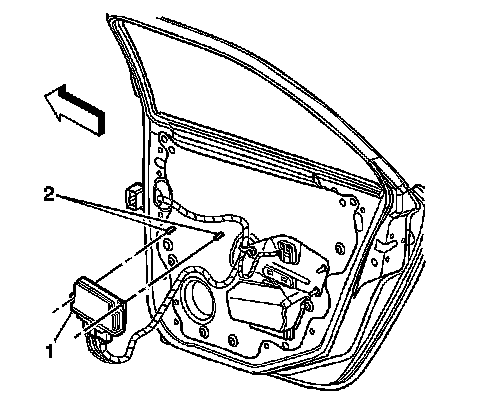 1. Remove the door trim panel. Refer to Rear Side Door Trim Panel Replacement (Service and Repair) or Front Side Door Trim Panel Replacement (Service and Repair).
